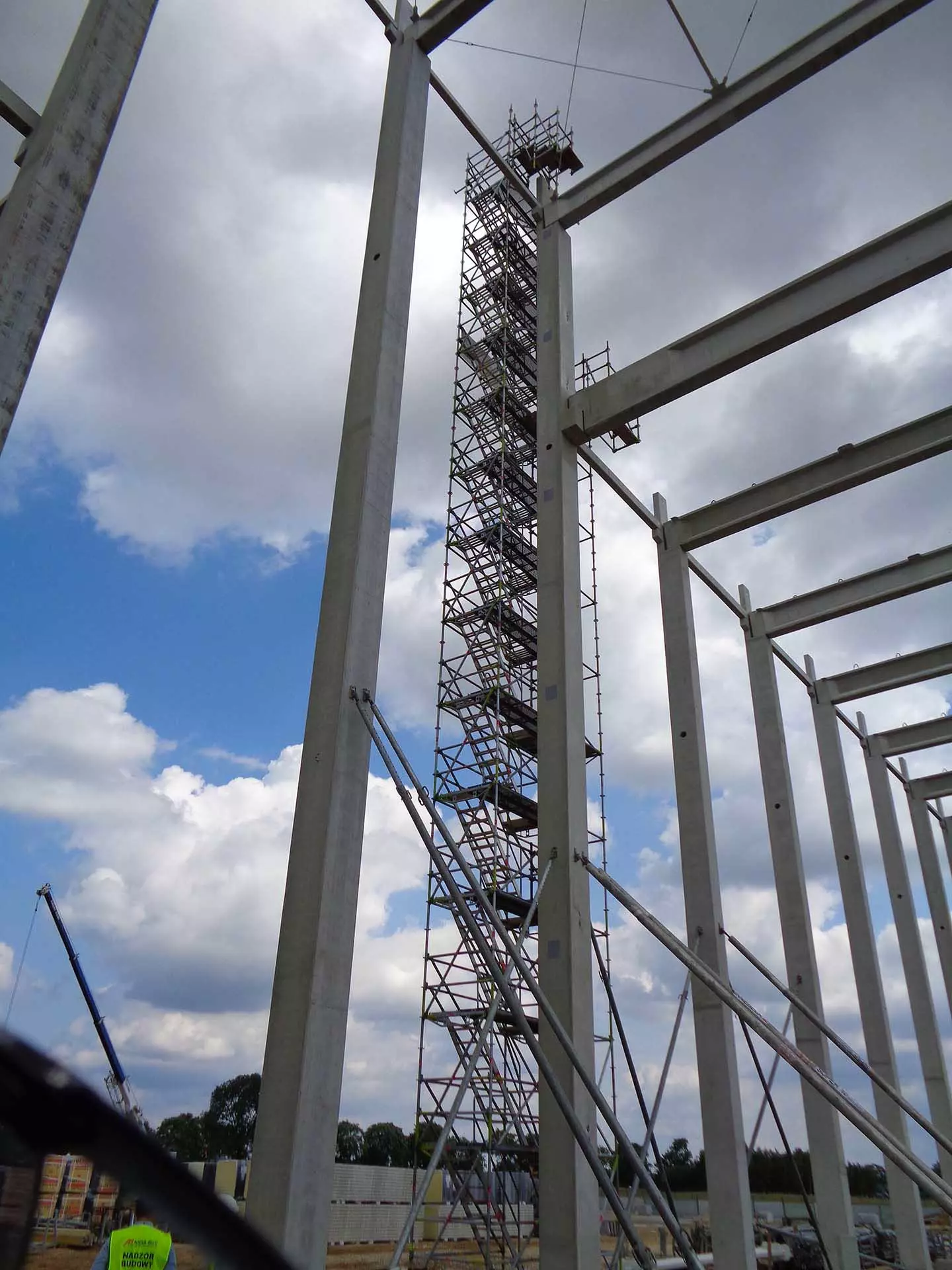 - Rusztowania dla wież – np. przy wieżach kościołów, kominach, masztach.