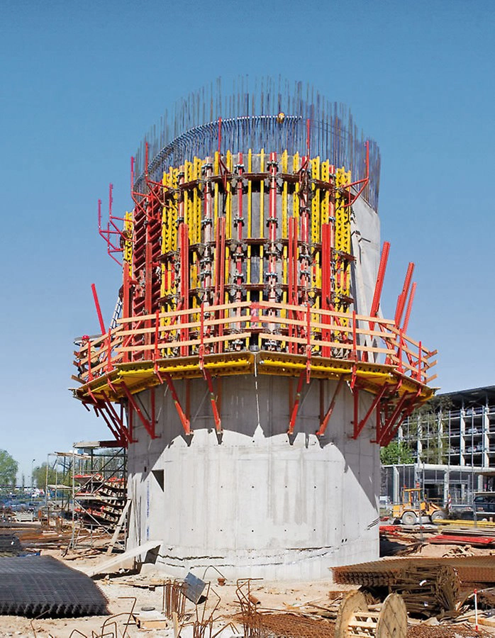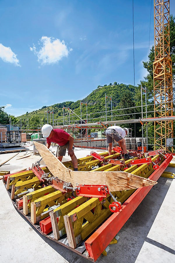 RUNDFLEX to innowacyjne deskowanie łukowe, które umożliwia szybkie i precyzyjne formowanie ścian o różnych promieniach, zaczynając od 1,00 m. System składa się z gotowych elementów, które można łatwo dostosować do wymaganego łuku bez potrzeby przebudowy płyt. Dzięki temu RUNDFLEX jest idealnym rozwiązaniem przy konstrukcjach o zmiennych krzywiznach, takich jak oczyszczalnie ścieków, rampy wjazdowe parkingów czy silosy.